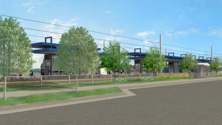 The rendering above shows planned plantings around the Blake Road Station platform.