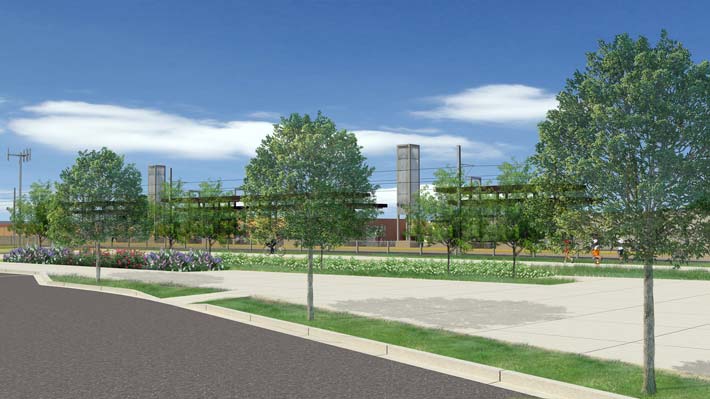 The planned Shady Oak Station, above, will be connected to a large park-and-ride lot. Trees will be planted in the foreground to provide shade and enhance the area.