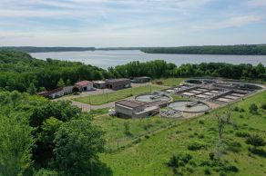 The Eagles Point Water Resource Recovery Facility began service in September 2002, replacing the Cottage Grove Facility that had been in operation since 1962. It's perched on a limestone bluff overlooking the Mississippi River and provides primary and secondary treatment to wastewater before discharging it to reduce climate risks and impacts on water sources. Biosolids are transported to the Metro Facility in Saint Paul for processing.